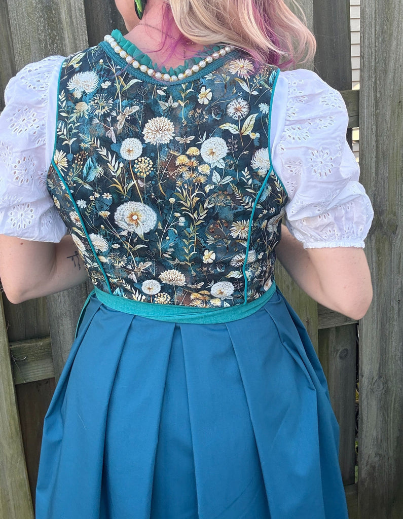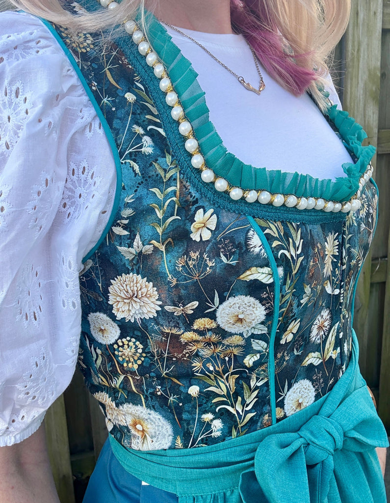 Inspired by the mythical Lorelei and the elusive Waldgeister, the Forest Nymph Dirndl captures the graceful mystery of forest spirits and river sirens. With flowing textures and botanical details, it feels like something plucked from a fairy tale—earthy, ethereal, and quietly powerful.