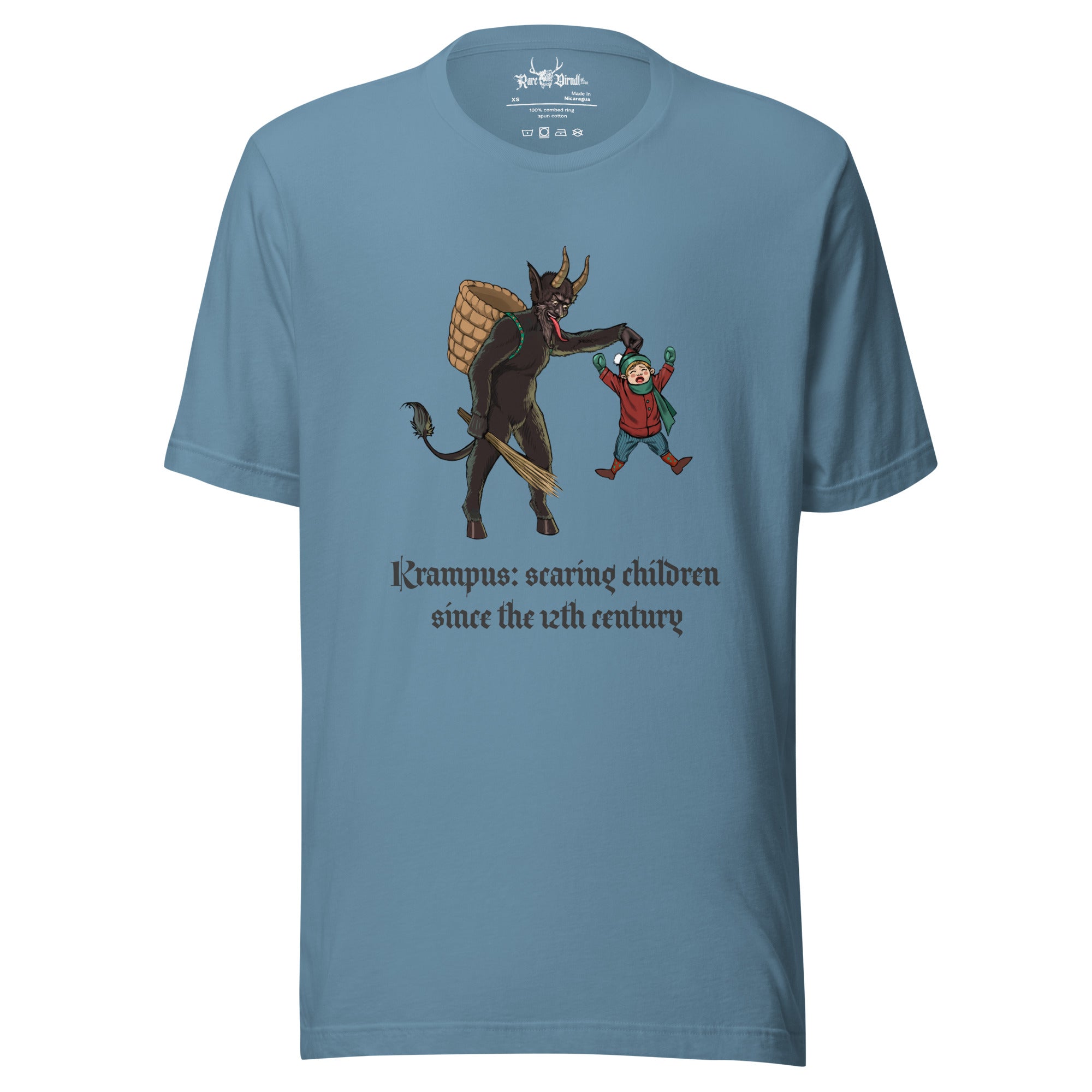 That's right! Krampus has been at this gig since the 12th century and he's not slowing down. Gear up for some Krampus style with our edgy Krampus T-Shirt. Made from comfy cotton, it's soft enough to keep even Krampus himself content. The design? Well, let's just say it's a festive twist that's bound to make a statement at any holiday shindig. So, whether you're a fan of Alpine folklore or just aiming to turn heads, this tee's got your back. Embrace the dark side of yuletide with a dash of Krampus magic - snag yours now!