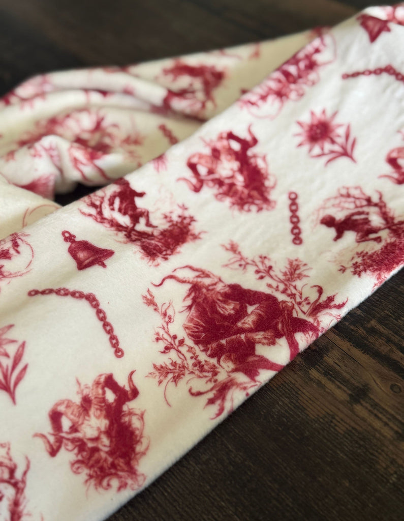 Welcome to our Annual Krampus Scarf - the epitome of cozy holiday with a touch of creepy chic! Made from an incredibly soft and cuddly custom-printed fabric, these scarves are designed to infuse your winter look with the playful spirit of Krampus himself.