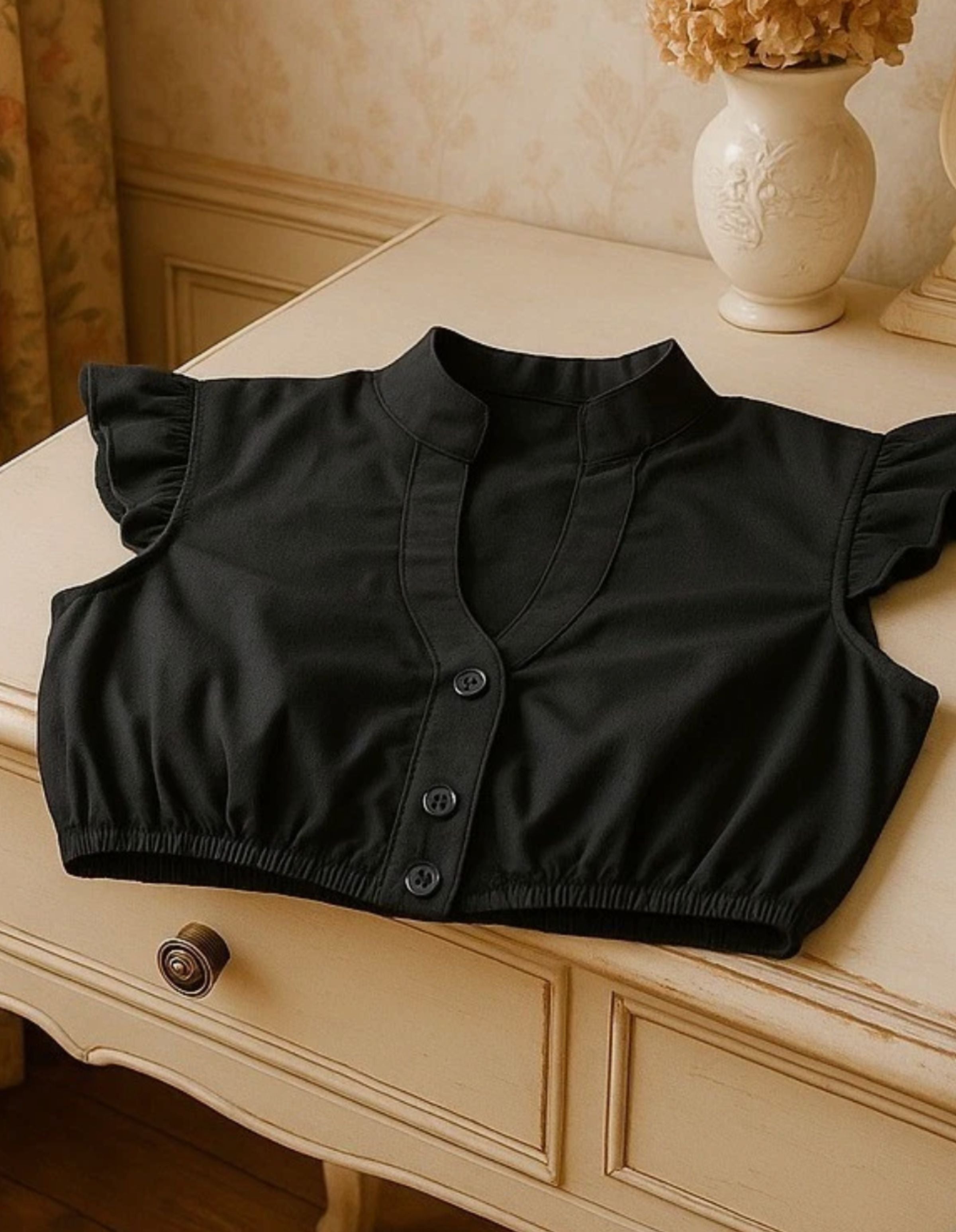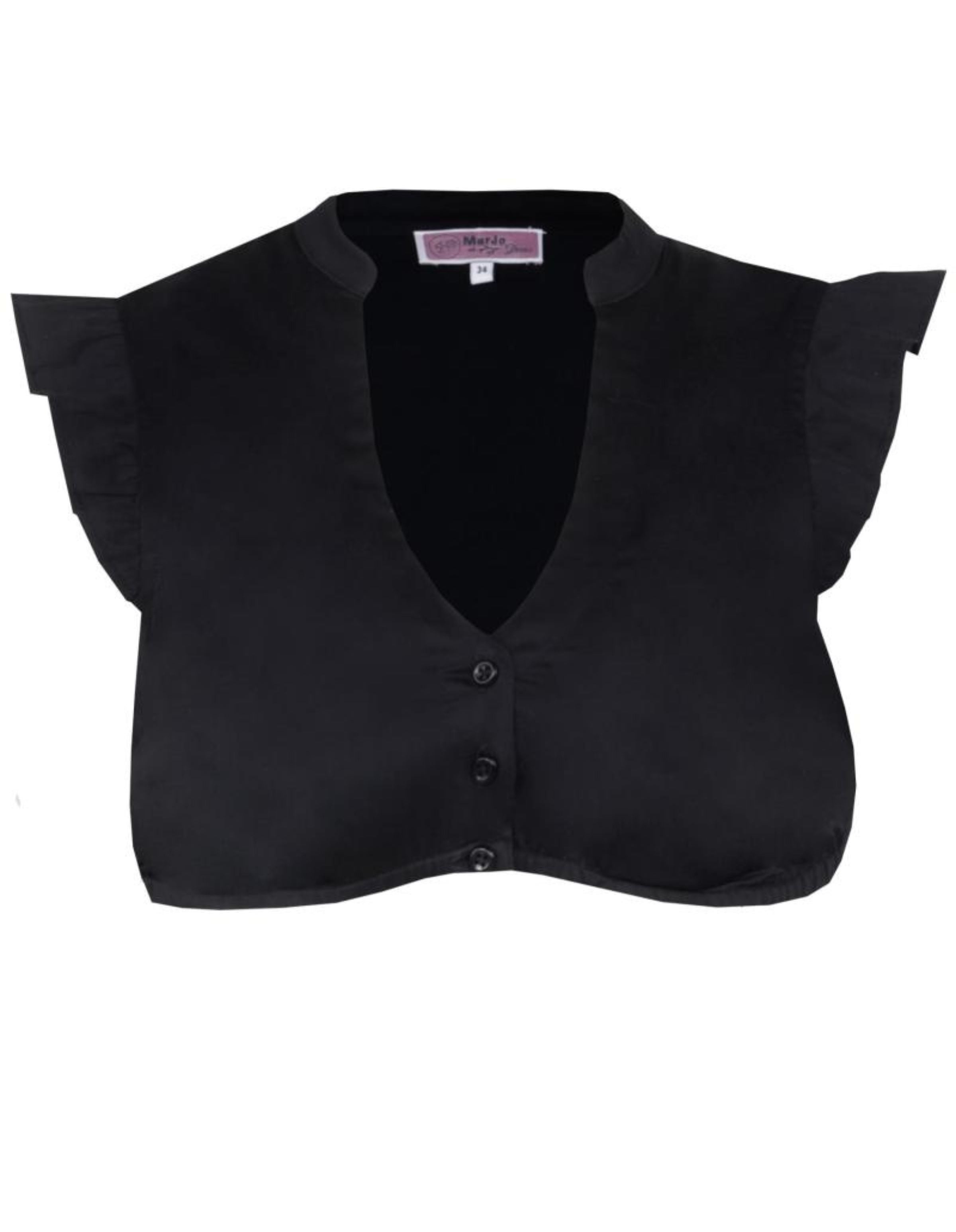 Black Flutter Sleeve V-Neck Dirndl Blouse